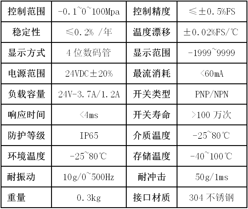The intelligent pressure switch is an intelligent digital pressure measurement and control product that integrates pressure measurement, display, output, and control. The product is an all-electronic structure. The front end adopts a hydraulic pressure damper sensor with an isolation membrane. The output signal is amplified by a high-precision, low-temperature drift amplifier, and sent to a high-precision A/D converter, which is converted into a digital signal that can be processed by a microprocessor. After the operation of the signal control two-way switch, the control system pressure measurement and control. The intelligent digital pressure switch is flexible, simple to operate, easy to debug, and safe and reliable. It is widely used in hydropower, tap water, petroleum, chemical, mechanical, hydraulic and other industries to measure and control the pressure of the fluid medium.